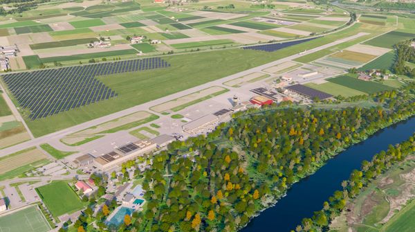 Die PV-Anlage wird auf dem eingezäunten Areal des Flughafens entstehen, auf den heutigen Graspisten und auf landwirtschaftlich genutztem Boden.